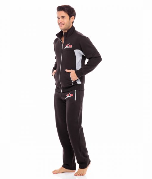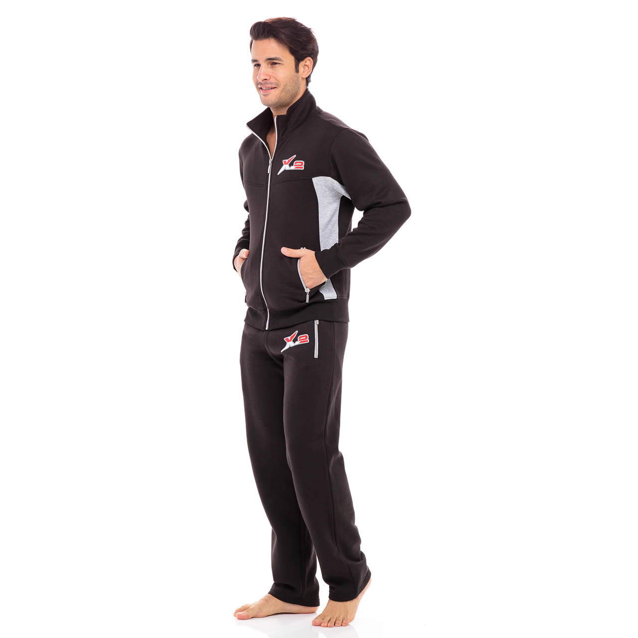 X-2 Mens Black Athletic Full Zip Fleece Tracksuit Jogging Sweatsuit Activewear